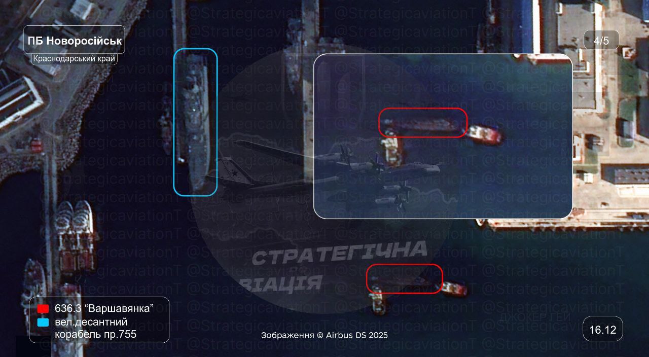 На второй фотографии тот же снимок подрыва пирса и двух подлодок, как и вчера. На четвертой фотографии какую-то из четырёх транспортируют в другое место.