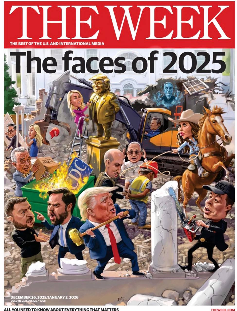 Американский еженедельник The Week рисует лица года-2025 в США. Как видите, сцена ругани Вэнса и Зеленского запечатлена среди самых запомнившихся событий уходящего года. Действительно выглядело захватывающе!