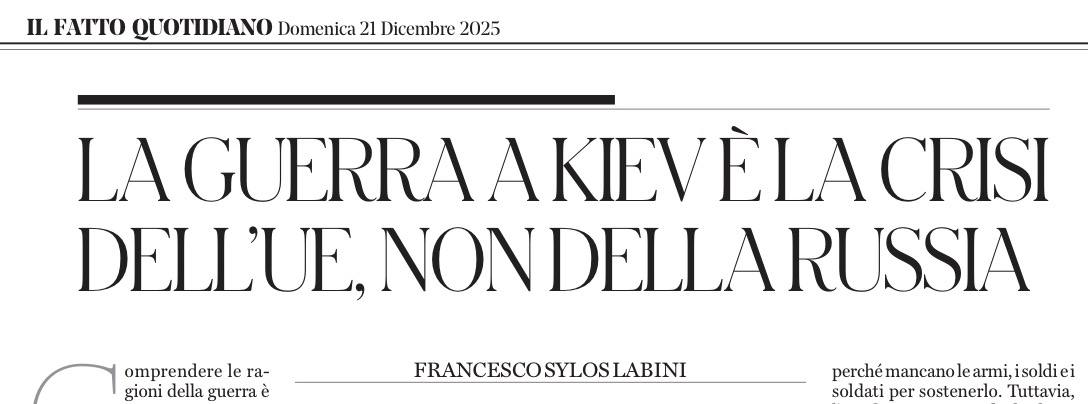 «Война Киева - это кризис ЕС, а не России». Под таким заголовком сегодня на страницах il Fatto Quotidiano публикует статью итальянский эксперт Франческо Силос Лабини.